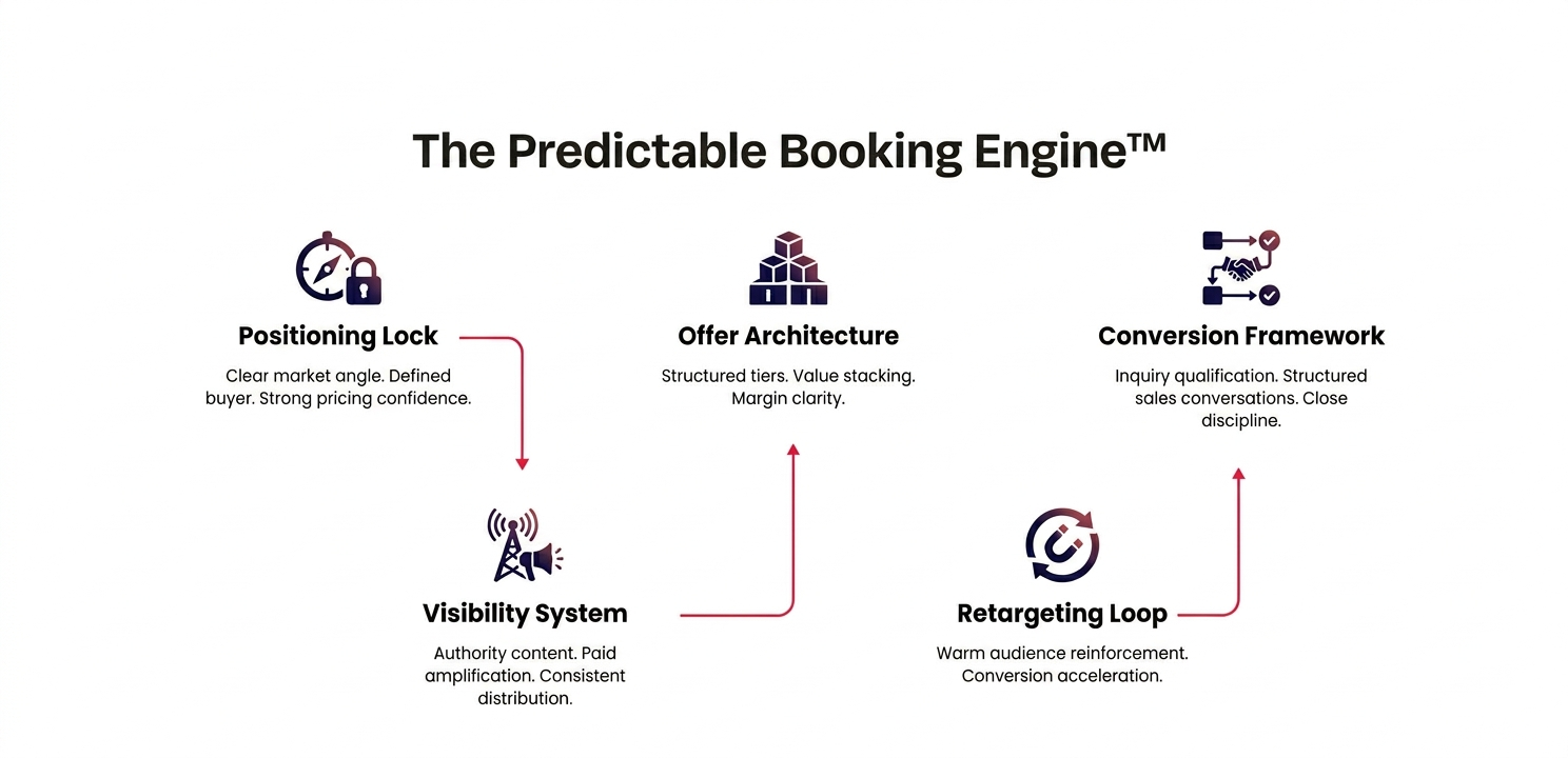 If your calendar fluctuates and referrals carry most of the weight, the issue is structural. Not creative. Not effort. Structural.